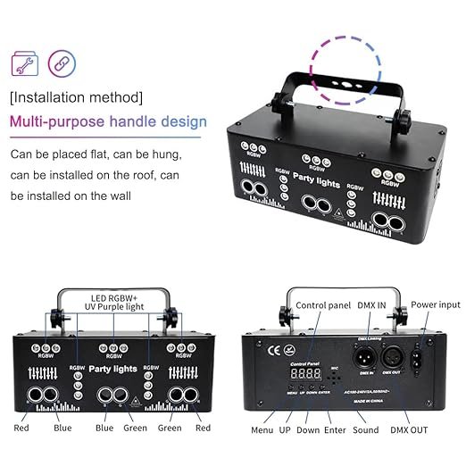 RGB UV Disco Party Light Indoor Stage Lighting Effect LED Projector Support DMX 512 Sound Activated Ravelight with Remote Control for Home Parties Karaoke DELIVERY CHARGE EXTRA***