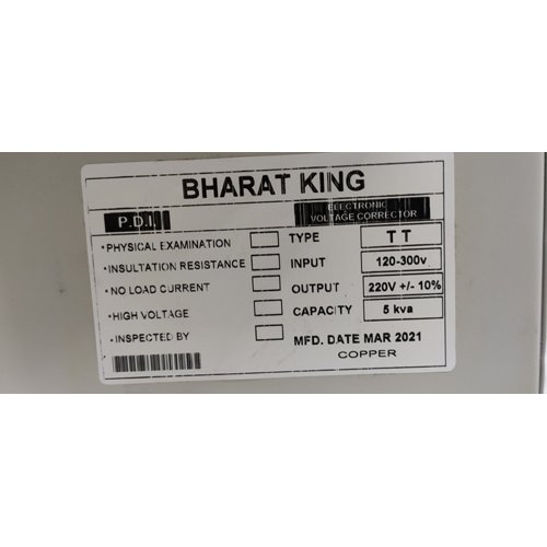 . 5 KV STABILIZER . AUTO CUT OF SUPPLY AFTER 240 Volt . ROUND TRANSFORMER . FULL COPPER . 3 YEAR STABILIZER TRANSFORMER WARRANTY . Input Power (V)120-260 Volt . The Full Range 90 Volt Technology . Light,Machine or any Home Appliances to Increase The Voltage, Mainline Use Up to 5 Kva Load .DELIVERY CHARGE EXTRA