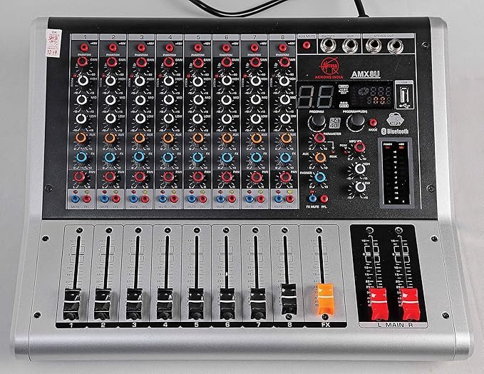 • The Aerons AMX8U is a professional audio mixer with 8 channels of audio input and output. It features a high-quality audio mixer with 8 channels of audio input and output, giving you the power to mix any audio source together with ease. The Aerons AMX8U also has a professional audio mixer with 8 channels