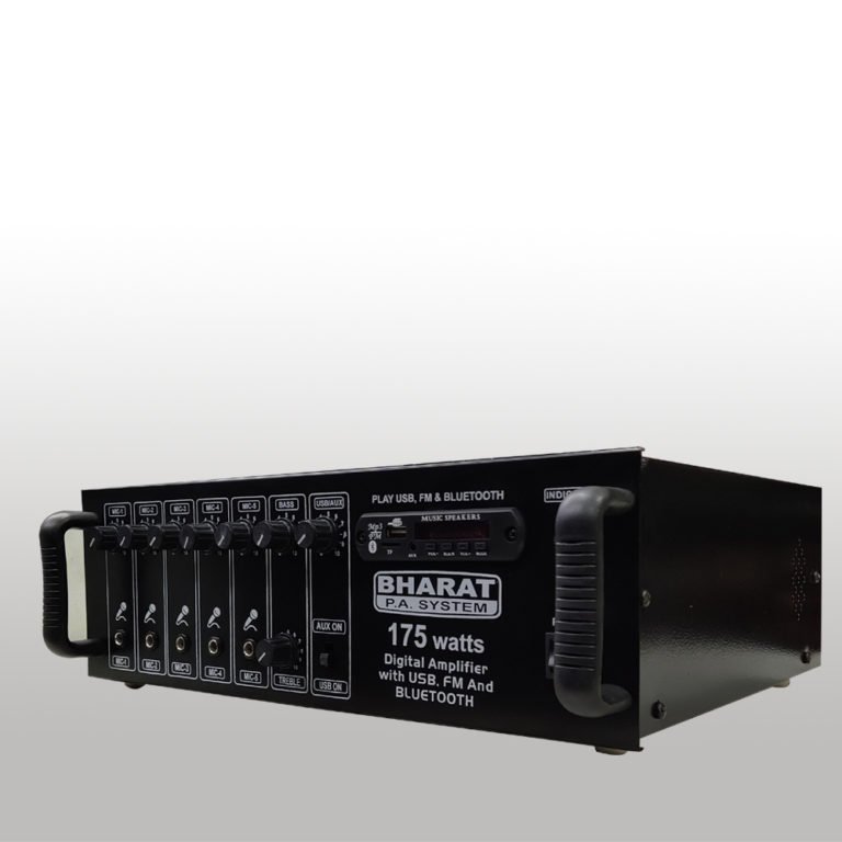 5 Mic & 1 Aux Input Built-in MP3 player with USB reader and remote control Line Output for connecting to a Booster Amplifier Cut type tone control Instant transfer to DC Power (Car Battery) if AC power fails. 175 WATTS DELIVERY CHARGE EXTRA WEIGHT:-9.85 KG