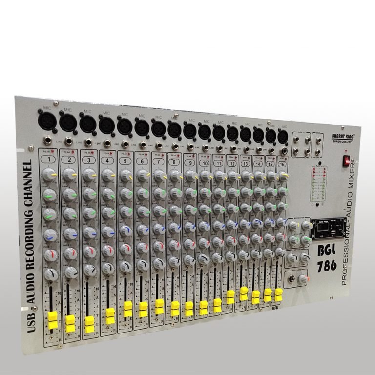 16 channel dj mixer https://youtu.be/ZN953yDnq2I USB Playback; Individual Gain, Bass, Mid, High Aux, Pan, Controls; Digital 16 Bit Effect Processor with LCD Stereo RCA Outputs for Recording; XLR Bal Outs & TRS Unbalanced Outs; Main (L+R), Phones & Master Effect Extra Stereo In with volume control; Individual PFL, Echo, Peak, LEDs on each inputs; Phantom with LED for condenser mics 11 x 2 Segment LED Level meter; Delay, repeat, Effect Send & AUX Controls