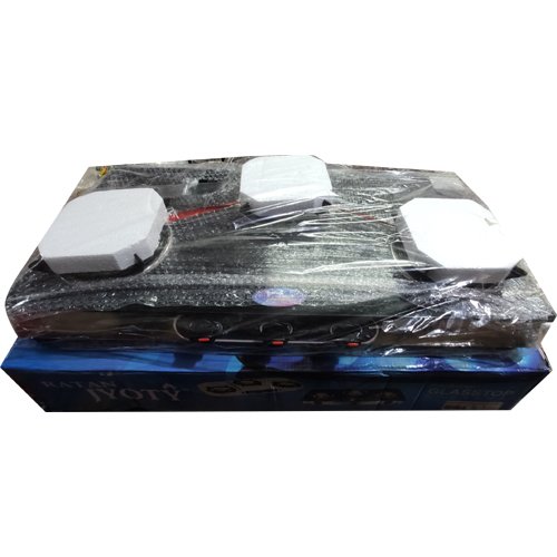. Type: Manual Gas Stove . Burner Type: Tri Pin Burner . Number of Burners: 3 . Body Material: Glass . Color: Black