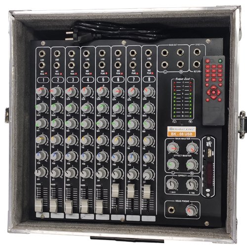 . USB Playback; Individual Gain, Bass, Mid, High Aux, Pan, Controls; Digital 16 Bit Effect Processor with LCD . Stereo RCA Outputs for Recording; XLR Bal Outs & TRS Unbalanced Outs; Main (L+R), Phones & Master Effect . Extra Stereo In with volume control; Individual PFL, Echo, Peak, LEDs on each inputs; Phantom with LED for condenser mics 11 x 2 Segment LED Level meter; Delay, repeat, Effect Send & AUX Controls