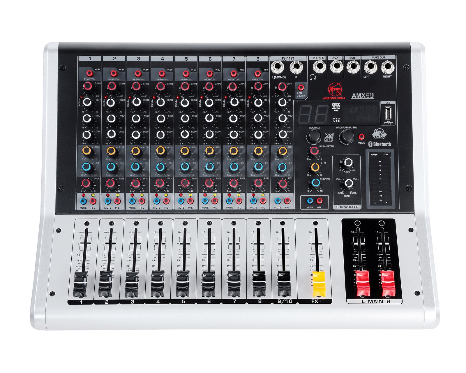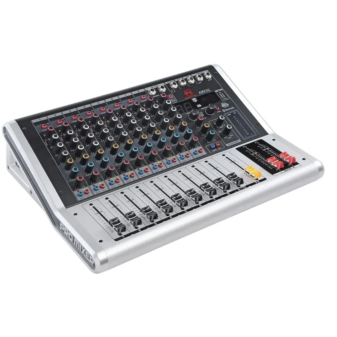 • The Aerons AMX8U is a professional audio mixer with 8 channels of audio input and output. It features a high-quality audio mixer with 8 channels of audio input and output, giving you the power to mix any audio source together with ease. The Aerons AMX8U also has a professional audio mixer with 8 channels