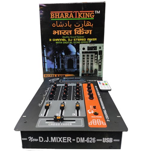 . 3 CHANNEL DJ MIXER WITH USB . USB Playback; Individual Gain, Bass, Mid, High Aux, Pan, Controls; Digital 16 Bit Effect Processor with LCD . Stereo RCA Outputs for Recording; XLR Bal Outs & TRS Unbalanced Outs; Main (L+R), Phones & Master Effect . Extra Stereo In with volume control; Individual PFL, Echo, Peak, LEDs on each inputs; Phantom with LED for condenser mics 11 x 2 Segment LED Level meter; Delay, repeat, Effect Send & AUX Controls . WEIGHT:- 2.75 KG