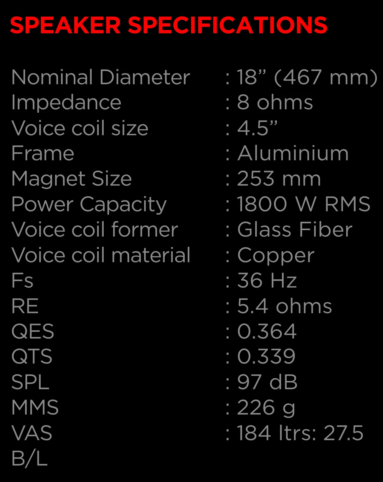 High Sensitivity means good performance even with reasonable powered amplifiers. & Dual forced hyper-venting system. & High BL to provide a faster and accurate low frequency & DELIVERY CHARGE EXTRA***