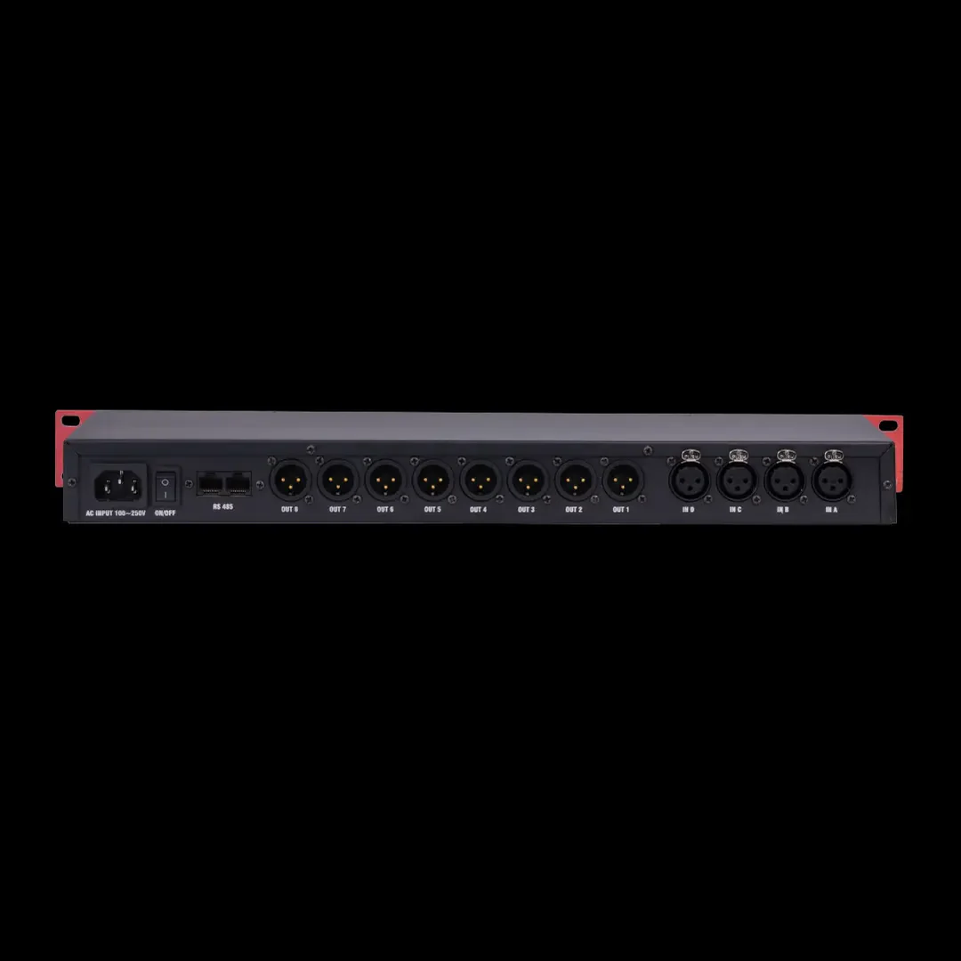 Protection against Overload,DC, Overheat Short Circuit, distortion limit and sub-low frequency and EM RF Interference Filter Digital Speaker Management System INPUT PROCESSING CHAIN • 7 PEQs (Bell, High Shelve, Low Shelve). • HPF (Butterworth, LR, Bessel, -12dB/Oct, -18 db/Oct, -24 dB/Oct, -48dB/Oct). • LPF (Butterworth, LR, Bessel, -12dB/Oct, -18 db/Oct, -24 dB/Oct, -48dB/Oct). • RMS Limiter, Peak Limiter. • Delay, Gain, Mute, Polarity.