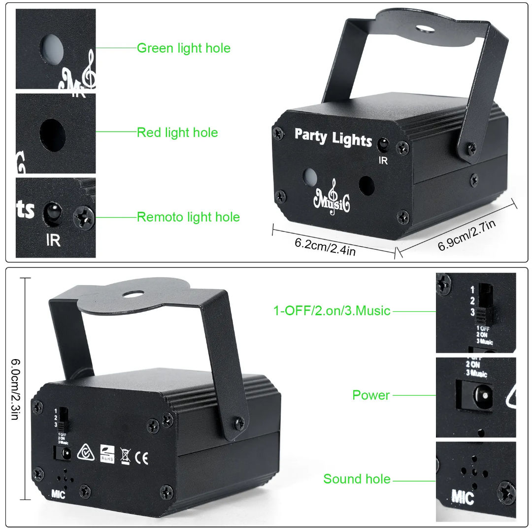 • LASER LIGHTING RG DOUBLE HOLES RED AND GREEN PATTERN , PROJECTOR STAGE LIGHT LED , LASER DISCO DJ LIGHTS