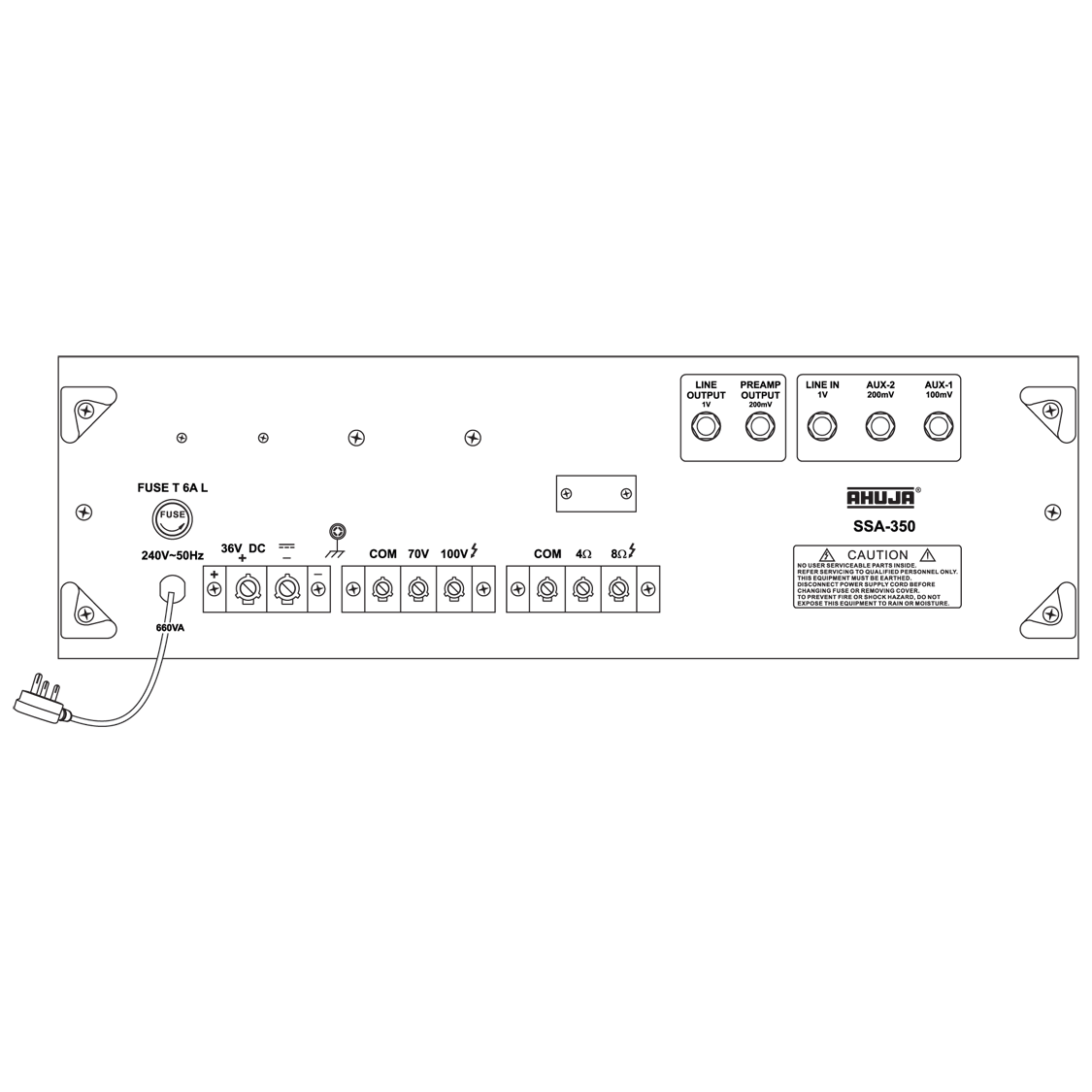 • Speaker Outputs: 4Ω, 8Ω, 70V & 100V