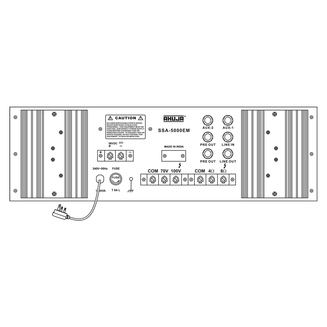 • Speaker Outputs: 4Ω, 8Ω, 70V & 100V